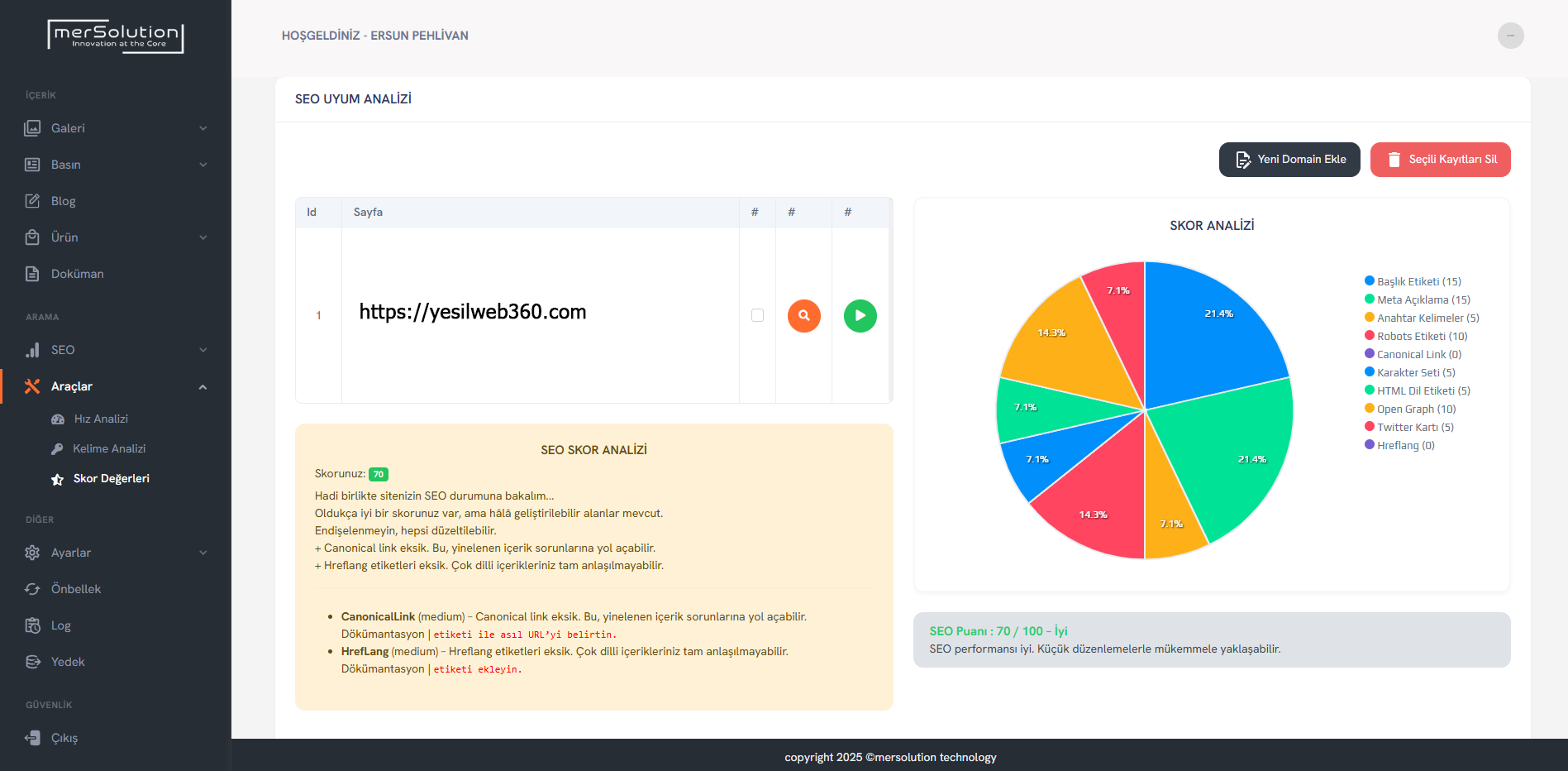 Sayfa yüklenme hızı ve içerik skorları otomatik analiz edilerek performans geliştirme sağlar.