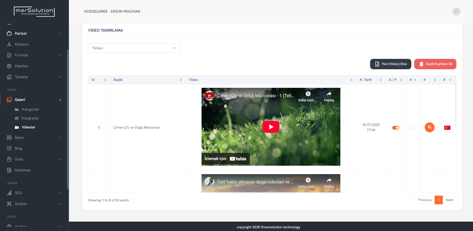 Görselliği ön plana çıkaran slider yönetimi, kategori bazlı resim/video galerisi ve medya içerik modülü sunar.