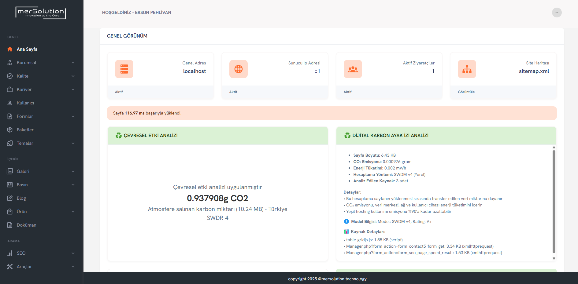 Panel üzerinden veritabanı yedeği alma, önbellek temizleme ve sistem log takibini kolayca yapabilirsiniz.